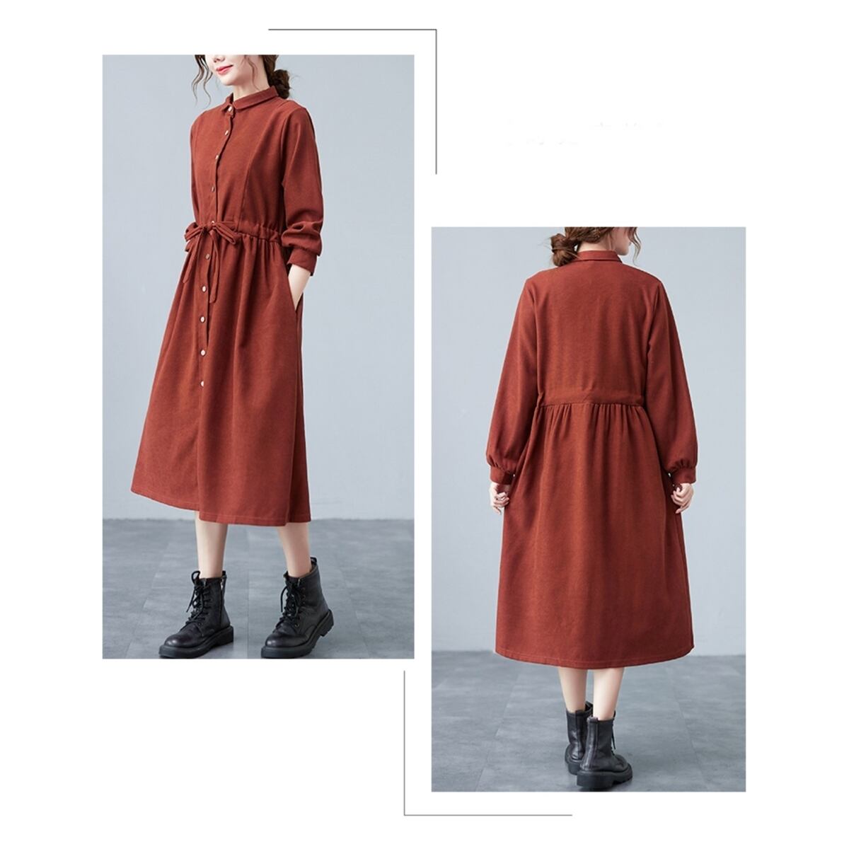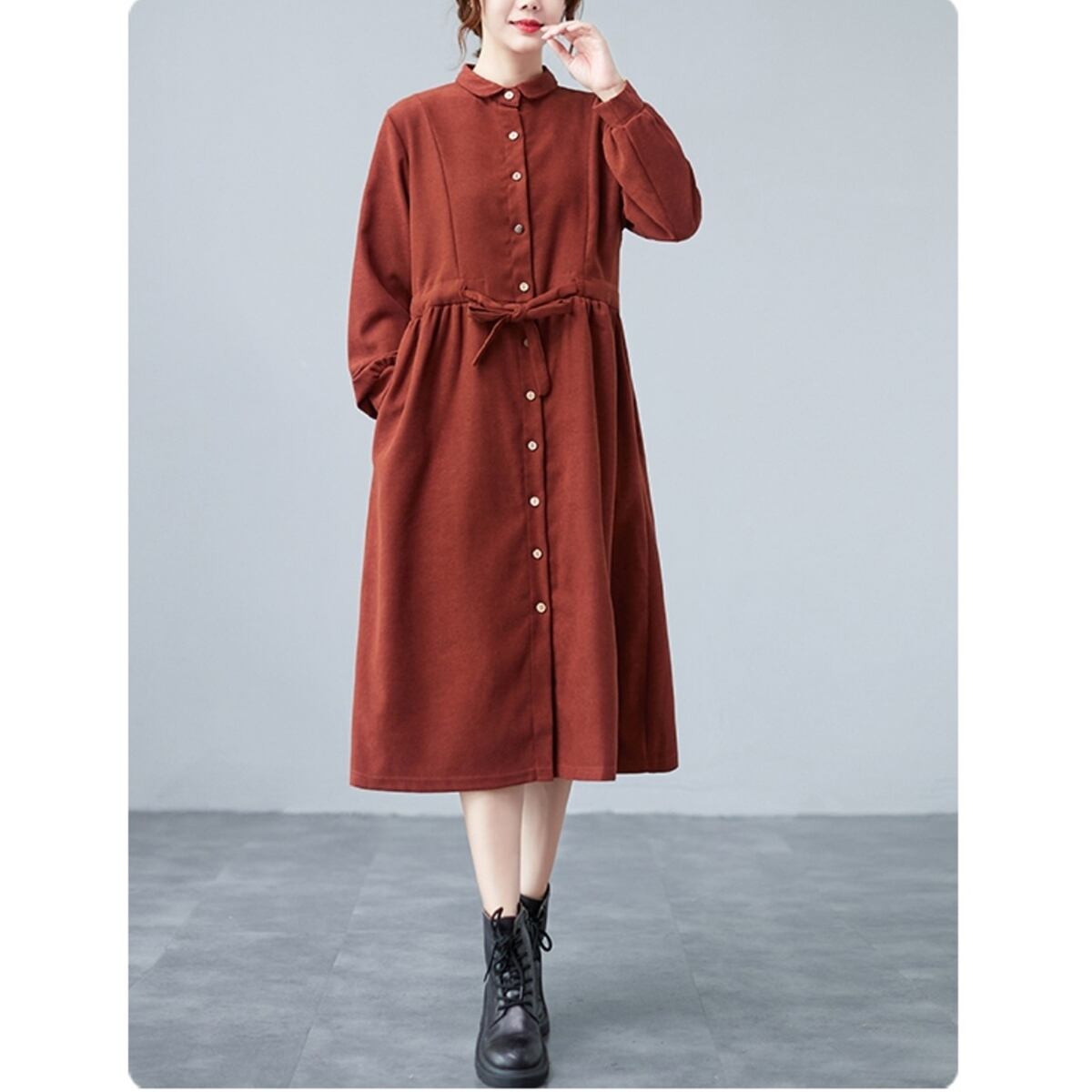 ゆったりウエスト Aライン スカート ヴィンテージ 長袖 カジュアル ドレス ワンピース レッド 大きい サイズ レディース 大人 女子 オフィス アウター お気に入り アイテム 通販 WOMEN 478