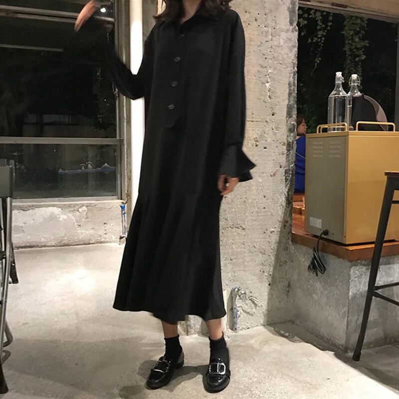 ● ビッグサイズ ルーズ レトロなカジュアル ブラックドレスです。