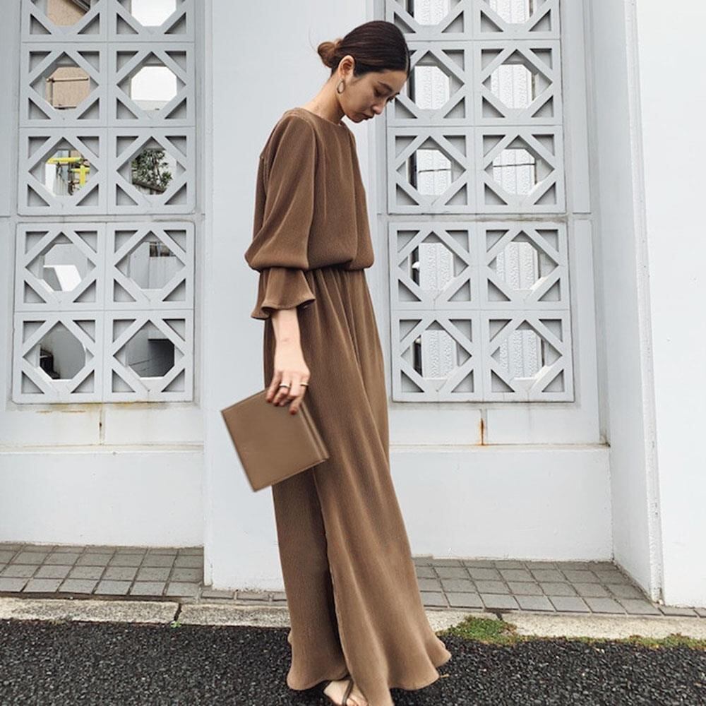 フレア スリーブ ルーズ ゆったり 長袖 ドレス ワンピース ブラウン 大きい サイズ レディース 大人 女子 カジュアル オフィス アウター お気に入り アイテム 通販 WOMEN 496