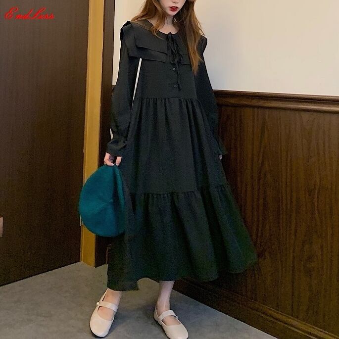 L 〜 4XL ゆったり ルーズ ファッション 長袖 ワンピース カジュアル ドレス ブラック キャラメル 大きい サイズ レディース 大人 女子 オフィス アウター お気に入り アイテム 通販 WOMEN 503