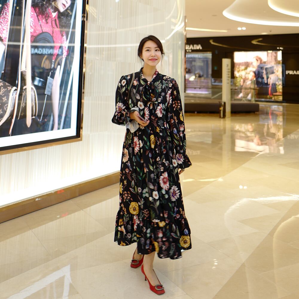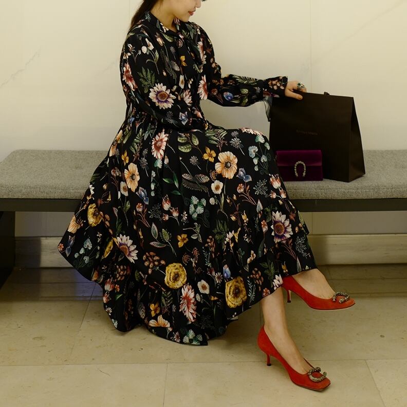 花柄 フローラル 長袖 ゆったり ルーズ エレガント ドレス 大きい サイズ レディース 大人 女子 オフィス アウター お気に入り アイテム 通販 WOMEN 504