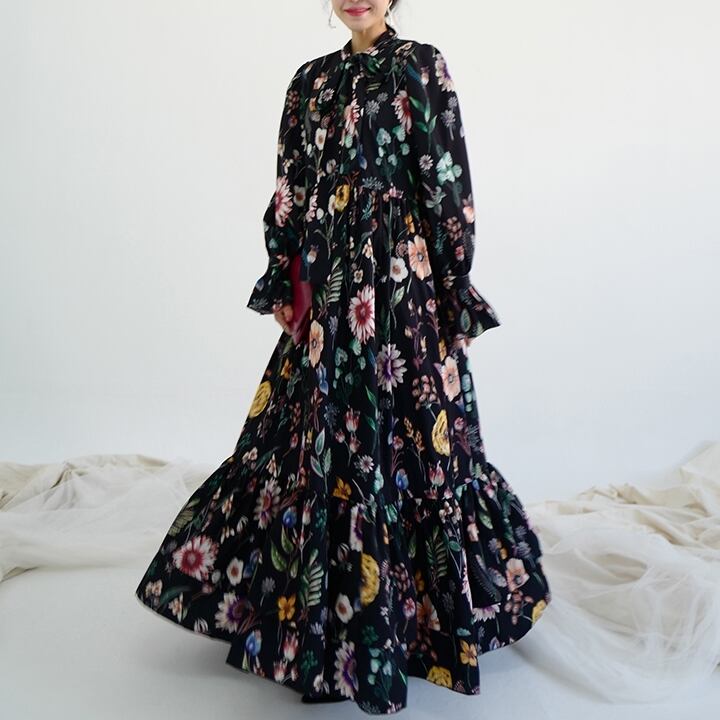 ● 花柄 フローラル ルーズ ロングスイングスカート ドレスです。