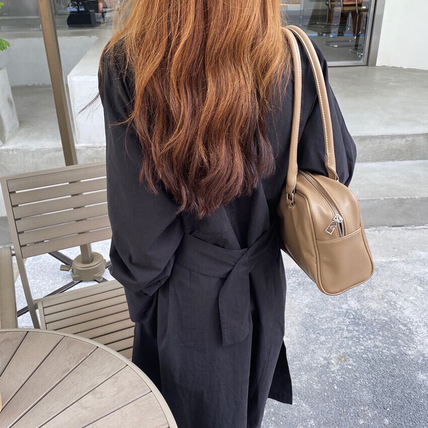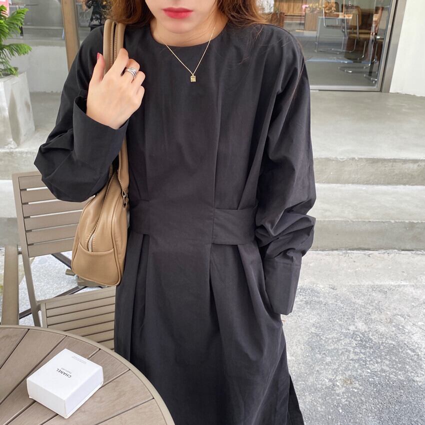長袖 ウエストベルト ワイド ルーズ ゆったり カジュアル スプリット ドレス ワンピース ブラック アプリコット 大きい サイズ レディース 大人 女子 オフィス アウター お気に入り アイテム 通販 WOMEN 505
