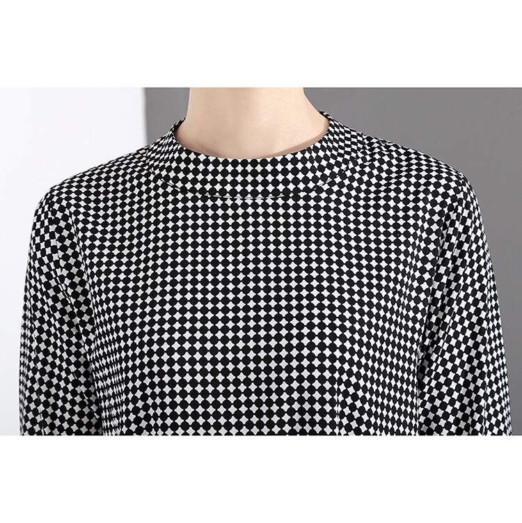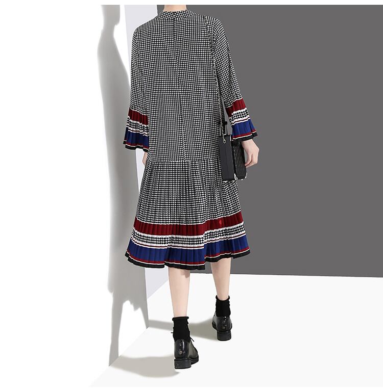 ドットグリッド チェック柄 トランペットスリーブ ルーズ 長袖 ワンピース大きい サイズ レディース カジュアル 大人 女子 オフィス アウター お気に入り アイテム 通販 WOMEN 508