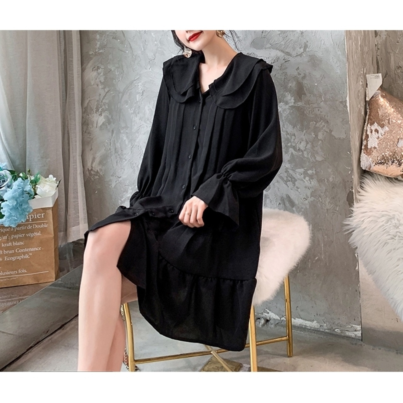 ● プラスサイズ トランペットスリーブ カジュアル ドレスです。