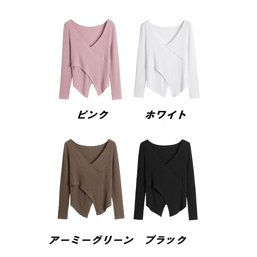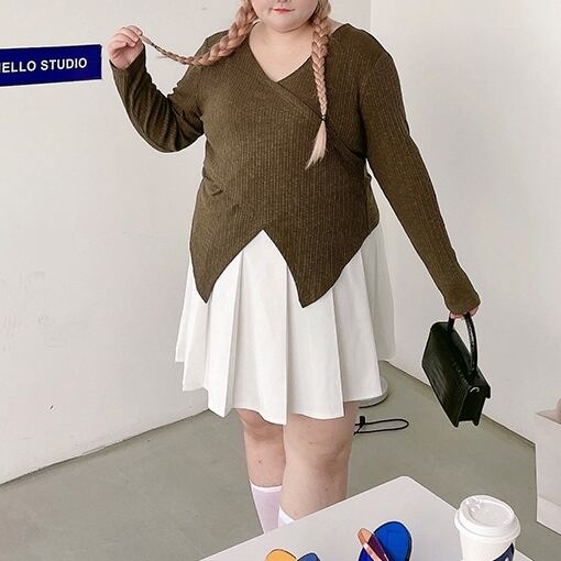 XL 〜 4XL プラスサイズ 不規則 クロスVネック セーター トップス ブラック ピンク ホワイト グリーン 大きい サイズ レディース セットアップ アウター カジュアル 大人 かわいい 女子 お気に入り WOMEN 通販 519