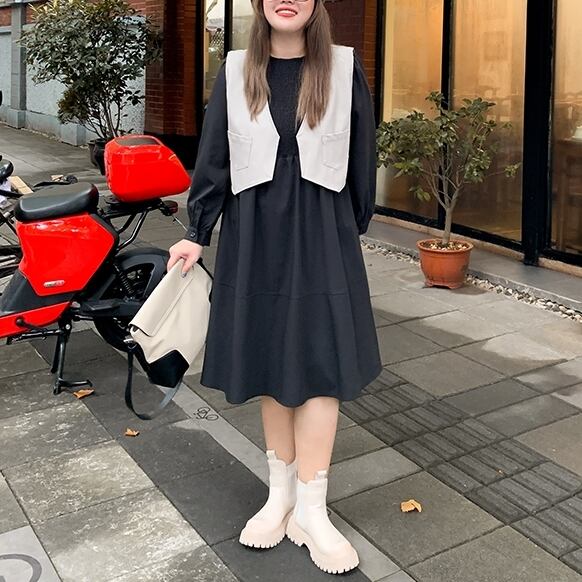XL 〜 5XL プラスサイズ ヴィンテージ ウエスト ゆったり 2ピースセット ベスト ワンピース カジュアル ブラック 大きい サイズ レディース 大人 女子 オフィス アウター お気に入り アイテム 通販 WOMEN 4XL 3XL 2XL 526