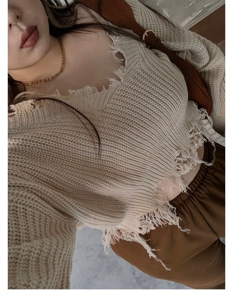 ● プラスサイズ ゆったり タッセルデザイン セーターです。