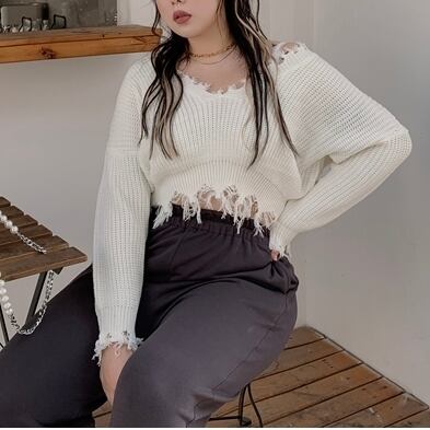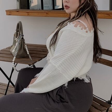 ワンサイズ ゆったり Vネック 長袖 タッセル デザイン セーター トップス ホワイト ブラック サイズ レディース コーデ セットアップ かわいい 大人 女子 お気に入り 通販 WOMEN 3l 2l 538