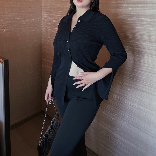 ● プラスサイズ セクシーなフレアスリーブ ニット カーディガンです。