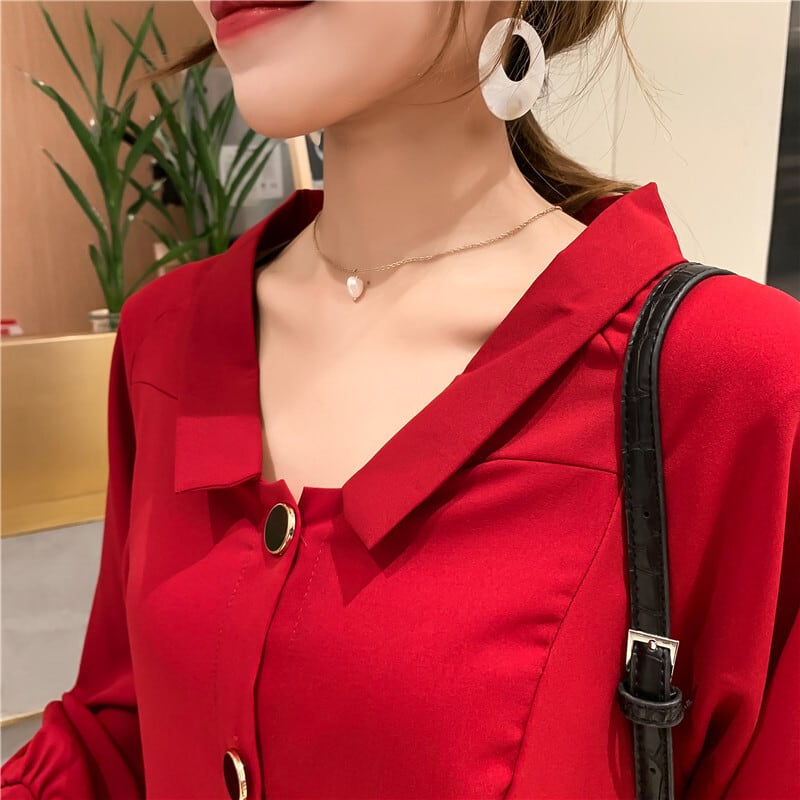 L 〜 4XL シングルバックル Vネック ゆったり シャツ ドレス ブラック レッド カジュアル 大きい サイズ レディース 大人 女子 オフィス アウター お気に入り アイテム 通販 WOMEN 3XL 2XL 541