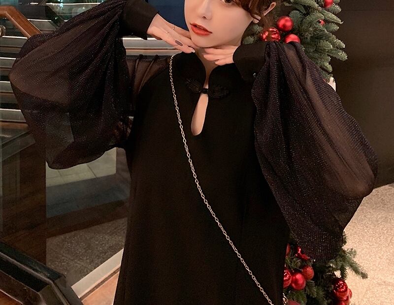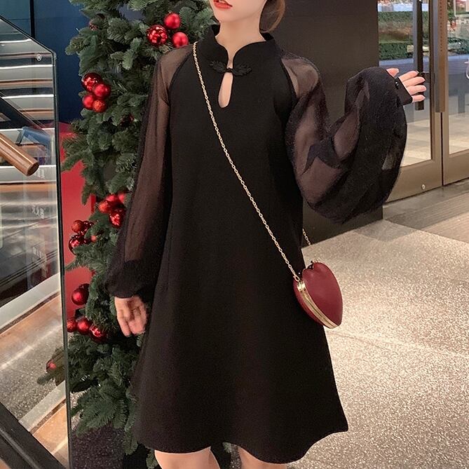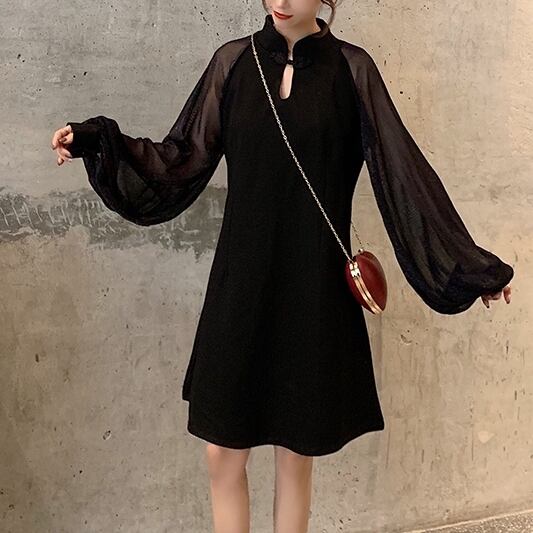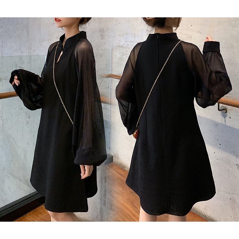 ● ゆったり メッシュ ランタンスリーブ カジュアル ドレスです。
