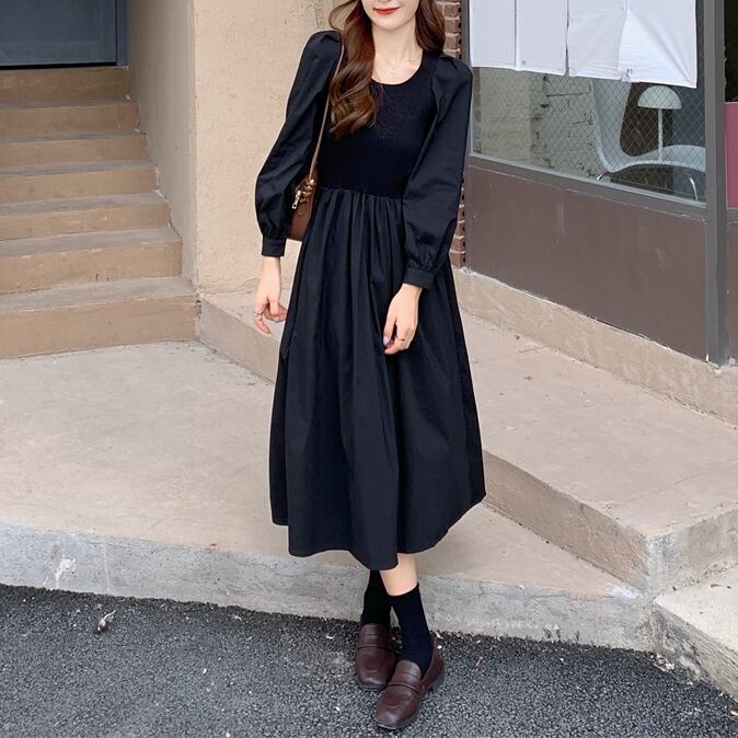 L 〜 4XL プラスサイズ スキニー ウエスト ニット 長袖 カジュアル ロング ドレス ブラック グレー 大きい サイズ レディース 大人 女子 オフィス アウター お気に入り アイテム ぽっちゃり 通販 WOMEN 3XL 2XL 551