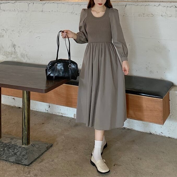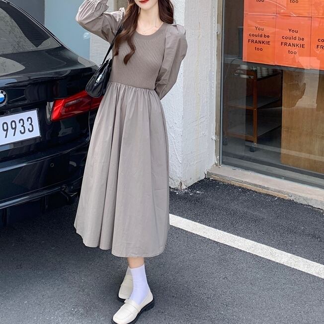 ● ニット パッチワーク 長袖 ヴィンテージ ロングドレスです。