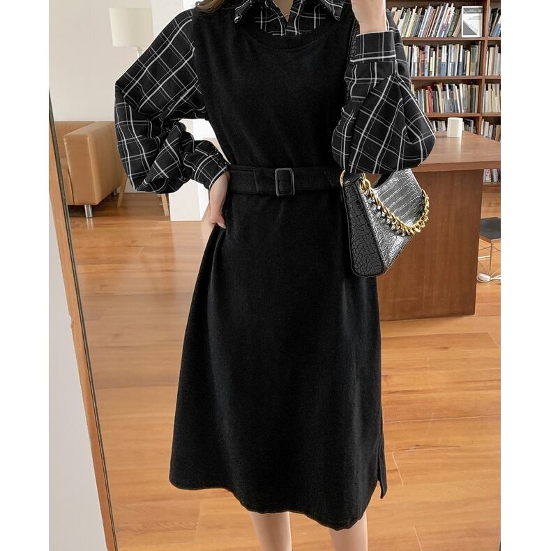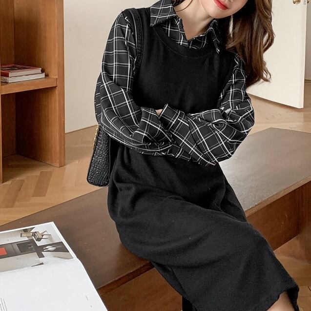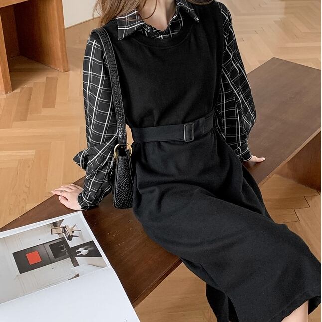S 〜 4XL プラスサイズ チェック柄 長袖 カジュアル ドレス ワンピース ブラック 大きい サイズ レディース 大人 女子 オフィス アウター お気に入り アイテム ぽっちゃり 通販 WOMEN 3XL 2XL 553