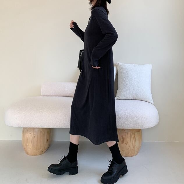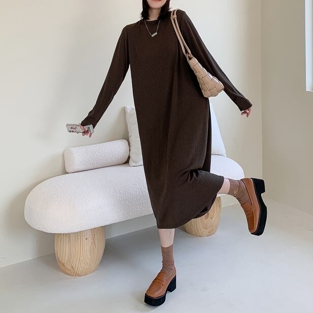 L 〜 3XL ウエスト ゆったり ストライプ 長袖 ミディアム スカート ワンピース ブラック ブラウン 大きい サイズ レディース 大人 女子 オフィス アウター お気に入り アイテム ぽっちゃり 通販 WOMEN 3XL 2XL 557