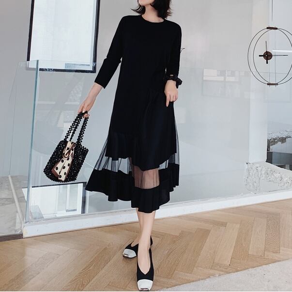 ● ぽっちゃり ゆったり パッチワーク メッシュ ドレスです。