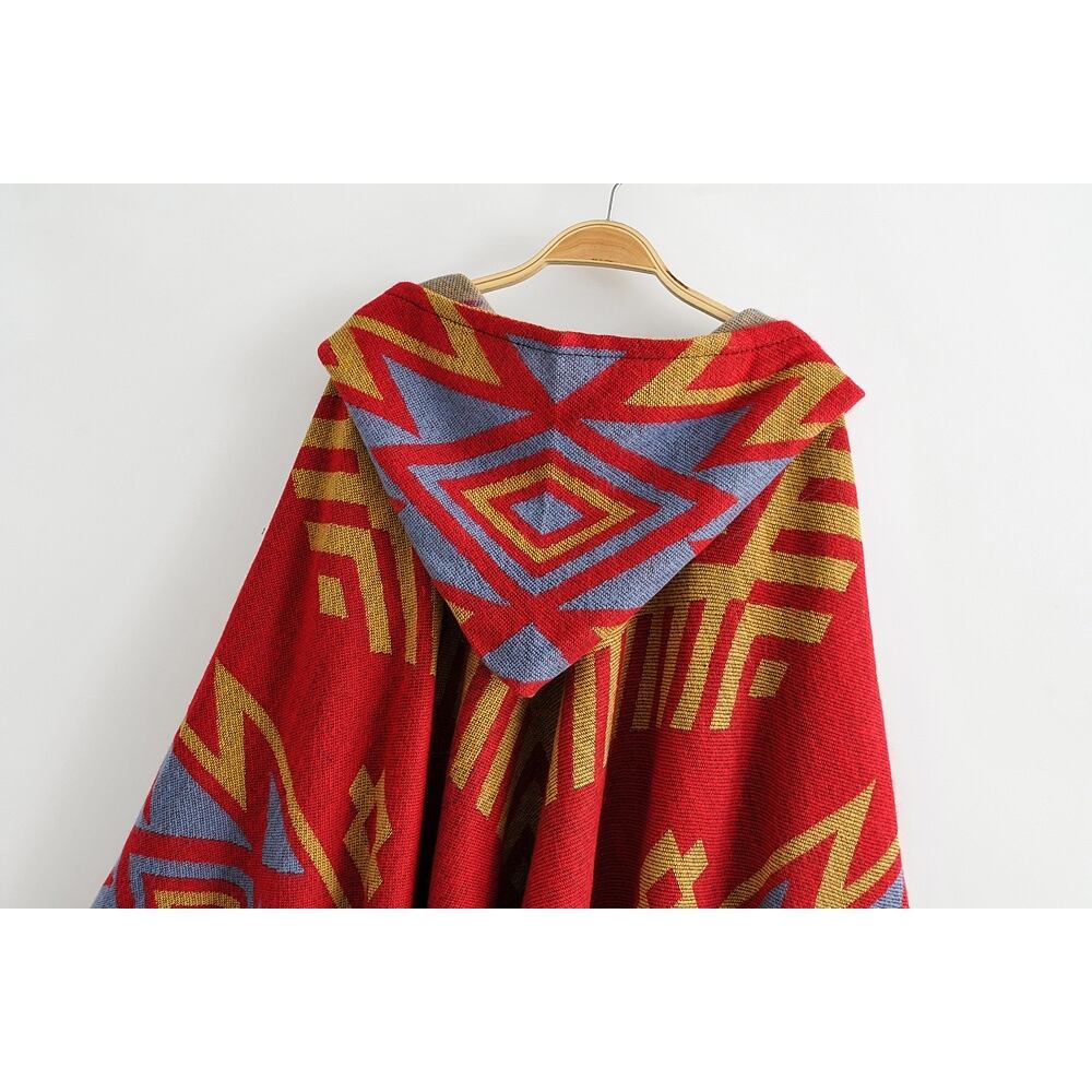 エスニック フード付き マント ショール ストール レッド 大きい サイズ レディース セットアップ アウター カジュアル 大人 ぽっちゃり かわいい 女子 お気に入り WOMEN 通販 564
