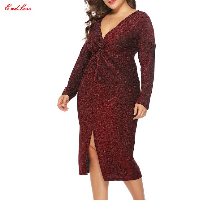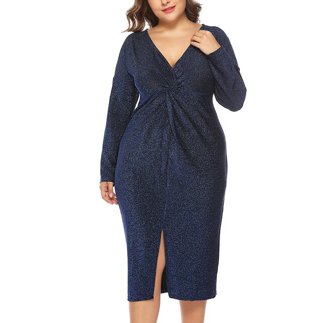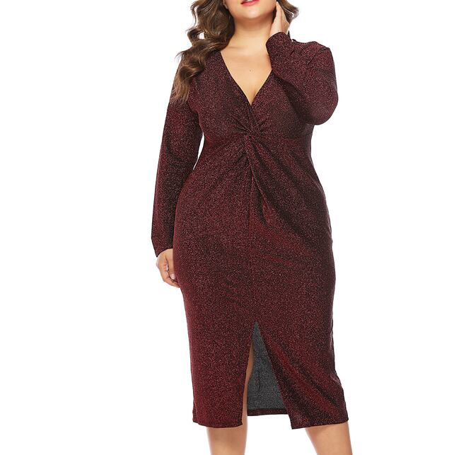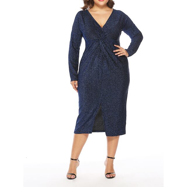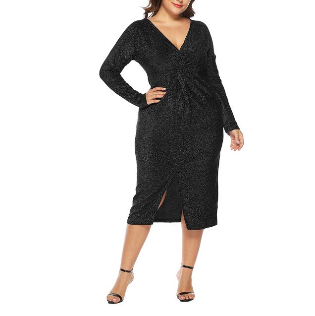 XL 〜 5XL セクシー Vネック 長袖 フォーマル パーティー ドレス ブラック 大きい サイズ レディース ファッション お気に入り アイテム 通販 574