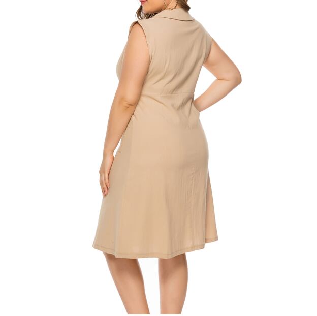 XL 〜 5XL Vネック ノースリーブ ひざ丈 ボタン カジュアル ワンピース 大きい サイズ レディース 大人 女子 アウター お気に入り アイテム ぽっちゃり 通販 WOMEN 4XL 3XL 2XL 575