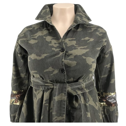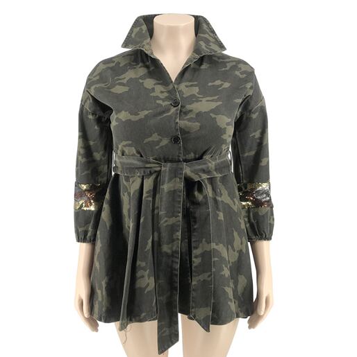 XL 〜 5XL プラスサイズ 迷彩 カモフラージュ コート ワンピース 大きい サイズ レディース 大人 女子 アウター お気に入り アイテム ぽっちゃり 通販 WOMEN 4XL 3XL 2XL 592