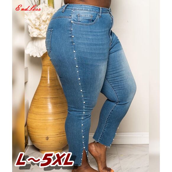 XL 〜 5XL ビッグ ゆったり ハイウエスト デニム パンツ ジーンズ ブルー 大きい サイズ レディース 大人 女子 アウター お気に入り アイテム ぽっちゃり 通販 WOMEN 4XL 3XL 2XL 596