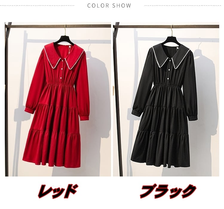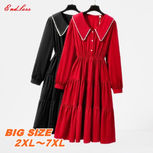 2XL 〜 7XL 特大サイズ ゆったり 長袖 ミディ丈 スカート カジュアル ドレス ワンピース ブラック レッド 大きい サイズ レディース 大人 女子 アウター お気に入り アイテム ぽっちゃり 通販 WOMEN 5L 4L 3L 606