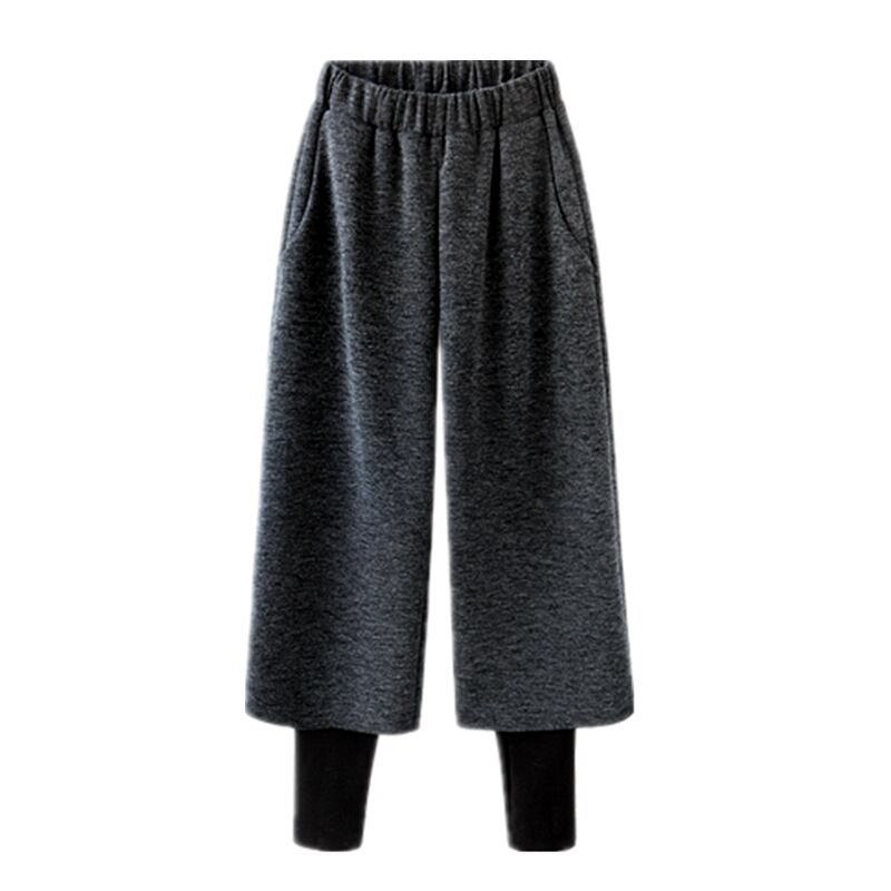S 〜 4XL ビッグ サイズ フェイク2ピース ワイド パンツ レギンス ワンピース カジュアル パンツ ブラック グレー 大きい サイズ レディース 大人 女子 アウター 安い 服 かわいい 通販 ぽっちゃり 4L 3L 2L 617