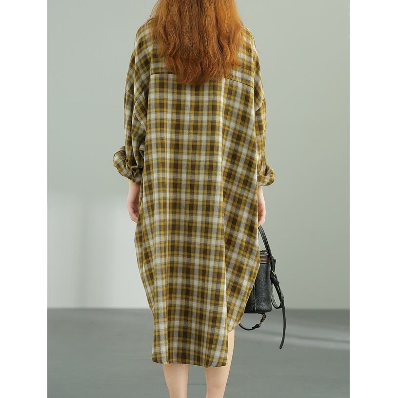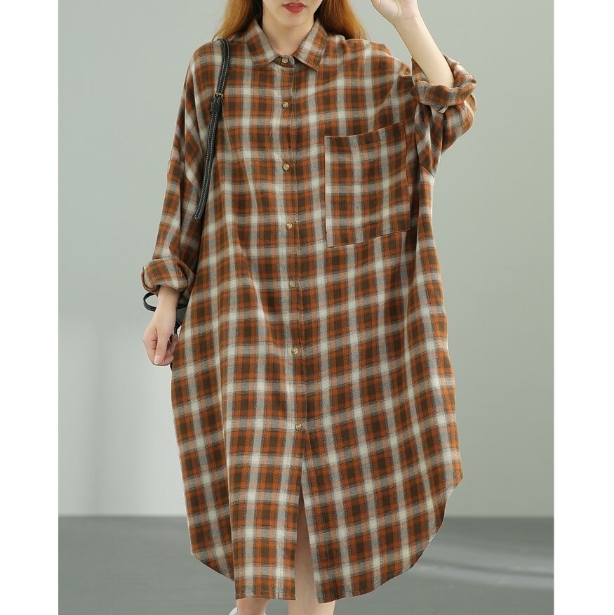 L 〜 2XL ゆったり カジュアル ルーズ チェック柄 ロング シャツ 630 大きい サイズ レディース コーデ セットアップ かわいい 大人 女子 お気に入り 通販 630