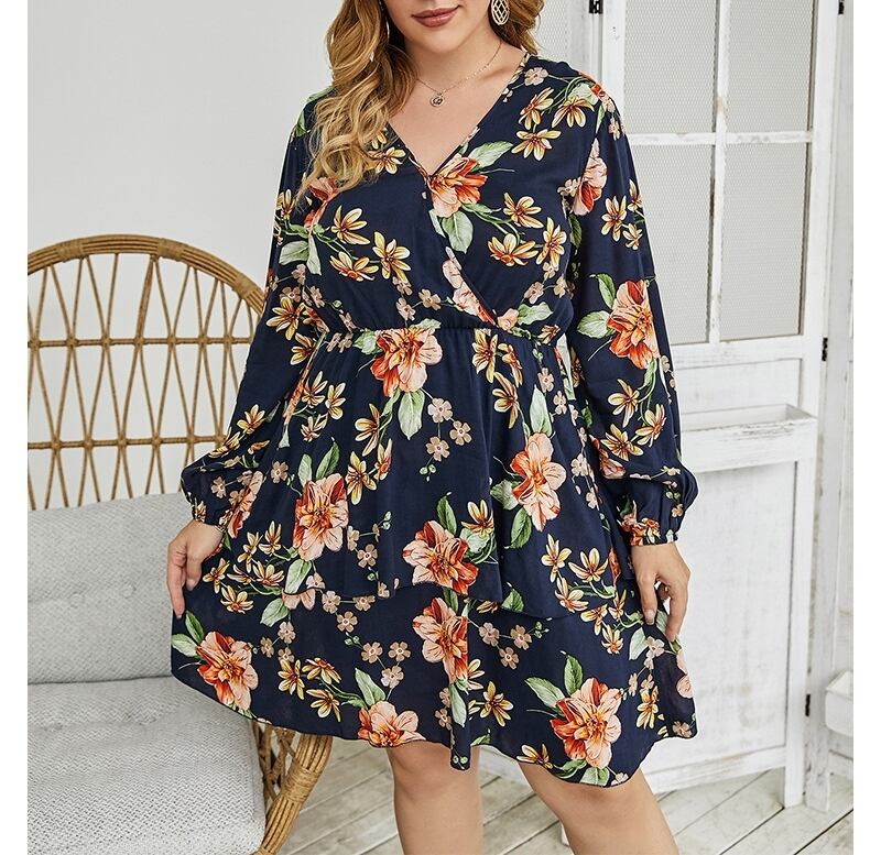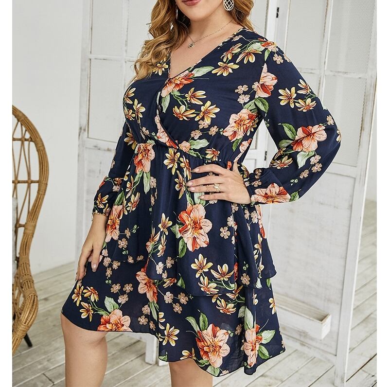 XL 〜 4XL Vネック スカート 花柄 フローラル カジュアル セクシー ドレス 632 大きい サイズ カジュアル レディース 大人 女子 アウター お気に入り アイテム ぽっちゃり 通販 4l 3l