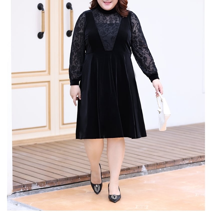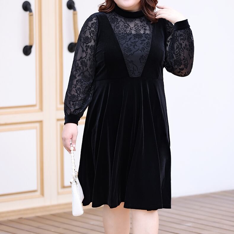 L 〜 6XL ラージサイズ 長袖 レース ゆったり ベルベット スカート ドレス 639大きい サイズ レディース ファッション お気に入り 大人 女子 アイテム 通販 6l 5L 4l3L 2L 639