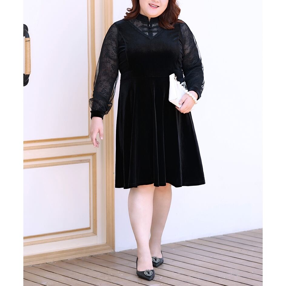 ● ベルベット レース 長袖 フォーマル カジュアルドレスです。