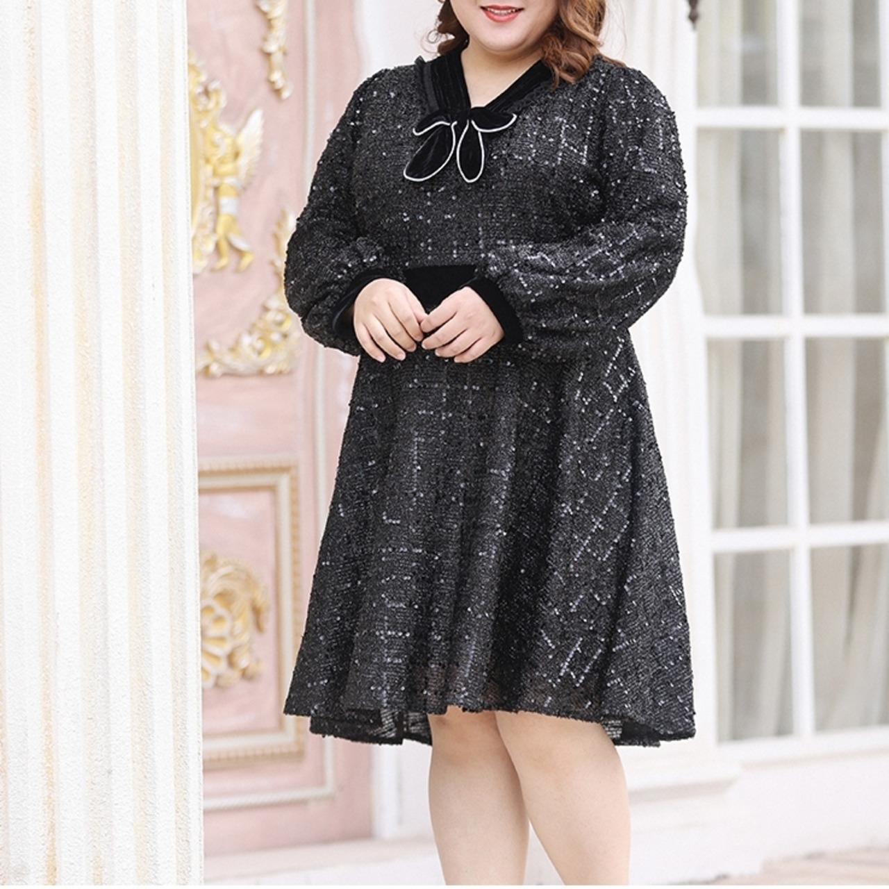 L 〜 6XL ゆったり ベルベット 長袖 カジュアル ワンピース ドレス ブラック 大きい サイズ レディース 大人 女子 アウター お気に入り アイテム ぽっちゃり 通販 6l 5l 4l 3l 645