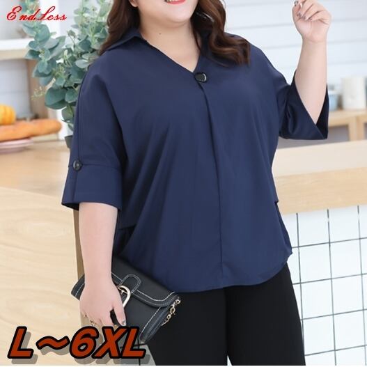 L 〜 6XL 七分袖 ゆったり 大きな ブラウス シャツ 黒 大きいサイズ レディース トップス 可愛い かわいい おしゃれ トップス オフィス 安い 通販 6l 5l 4l 668