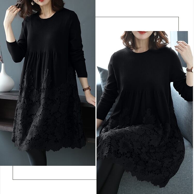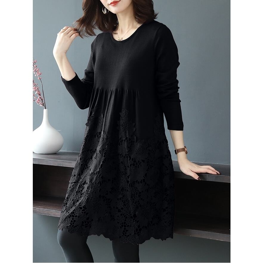 レース ステッチ 長袖 カジュアル ドレス ワンピース 大きい サイズ レディース 海外 通販 3l 2l 683
