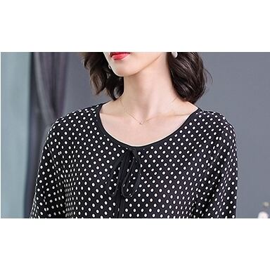 長袖 ドット柄 プリント ミドル丈 スカート カジュアル ドレス ワンピース大きい サイズ レディース 海外 通販 3l 2l 684