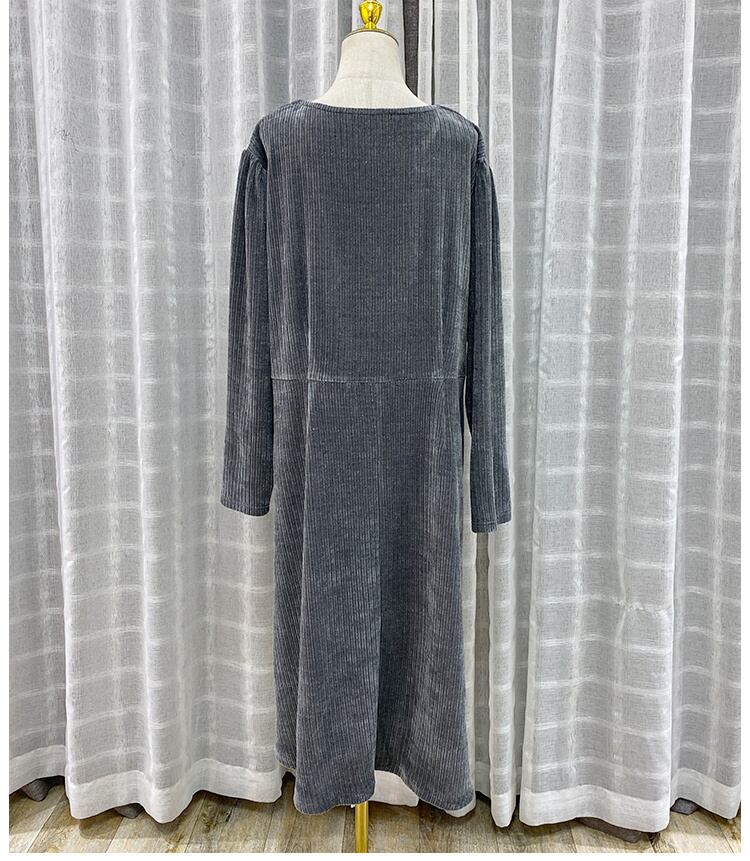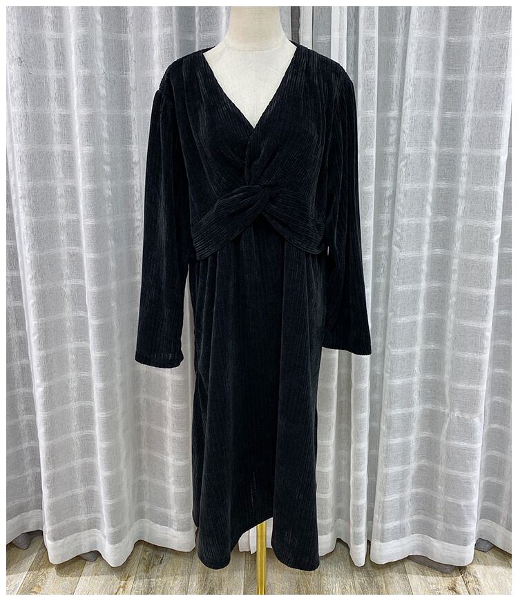Vネック ぽっちゃり 長袖 ブローチ レトロ カジュアル ドレス ワンピース 黒 大きいサイズ レディース 海外 通販 3l 2l 4l 691