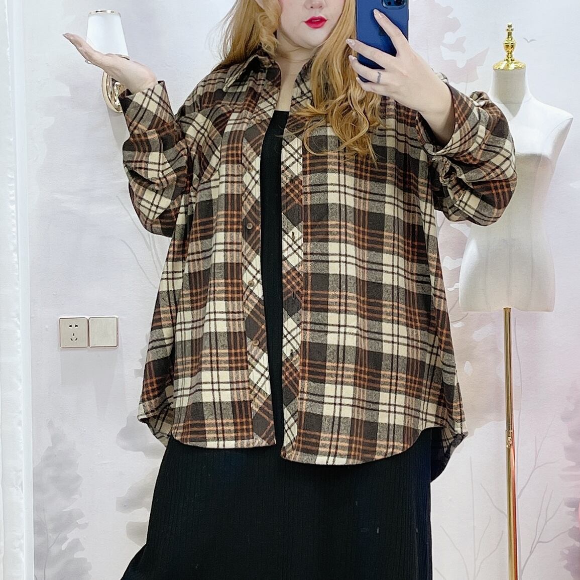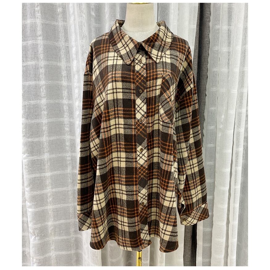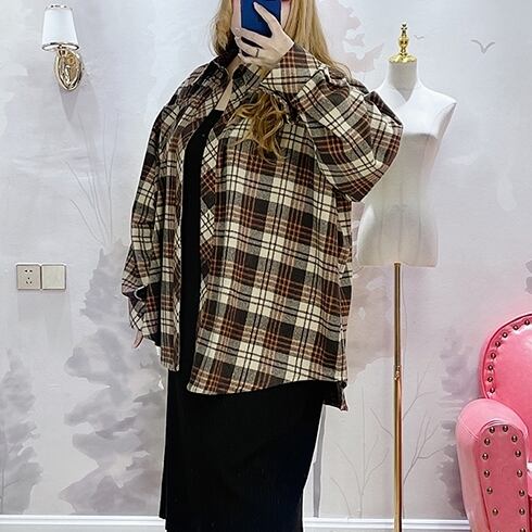チェック柄 長袖 ゆったり ビッグサイズ シャツ カジュアル コート 大きい サイズ レディース トップス 海外 通販 4l 3l 2l 697