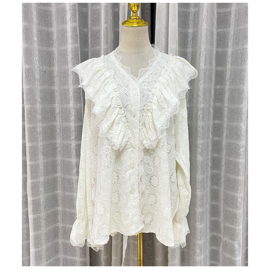 フリル レース 長袖 ぽっちゃり ゆったり シャツ カジュアル ブラウス 大きい サイズ レディース トップス 海外 通販 4l 3l 2l 698