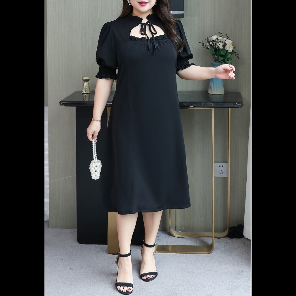 特大 エレガント 半袖 ドレス ワンピース 黒 大きいサイズ レディース フォーマル カジュアル 海外 通販 8l 7l 5l 6l 4l 702