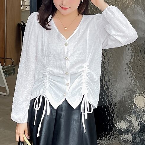 長袖 Vネック プリーツ シャツ ブラウス ゆったり カジュアル セクシー 大きい サイズ レディース トップス 海外 通販 4l 3l 2l 720