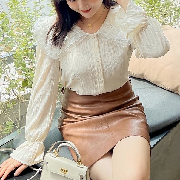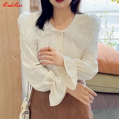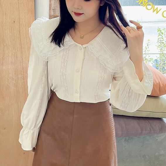 ハイカラー デザイン ホワイト 長袖 シャツ ブラウス ゆったり カジュアル 大きい サイズ レディース トップス 海外 通販 5l 4l 3l 2l 721