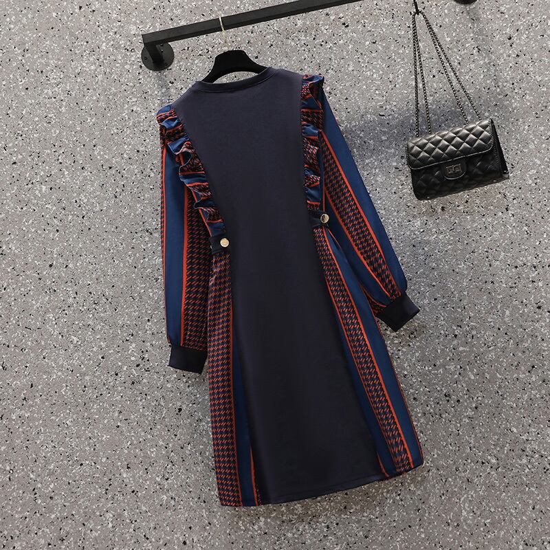 ビッグサイズ ストライプ 長袖 フリル ドレス 大きいサイズ レディース エレガント カジュアル ぽっちゃり 海外 通販 4l 3l 732