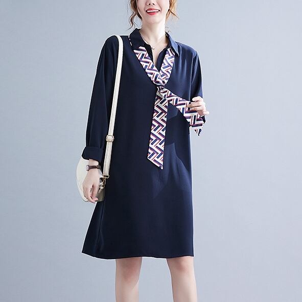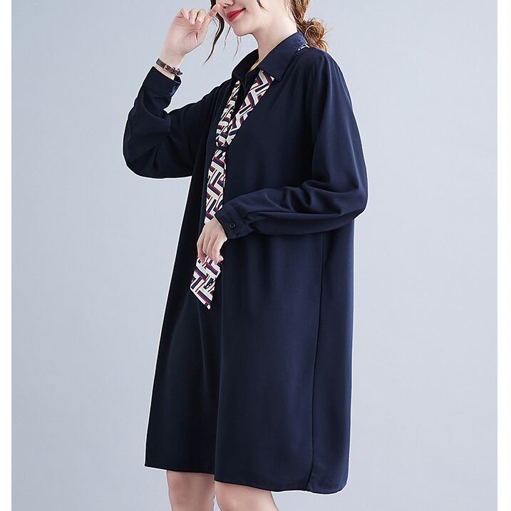 特大サイズ ゆったり 長袖 シャツ ワンピース 青 春 秋 大きいサイズ レディース エレガント カジュアル ぽっちゃり 海外 通販 5l 4l 3l 735