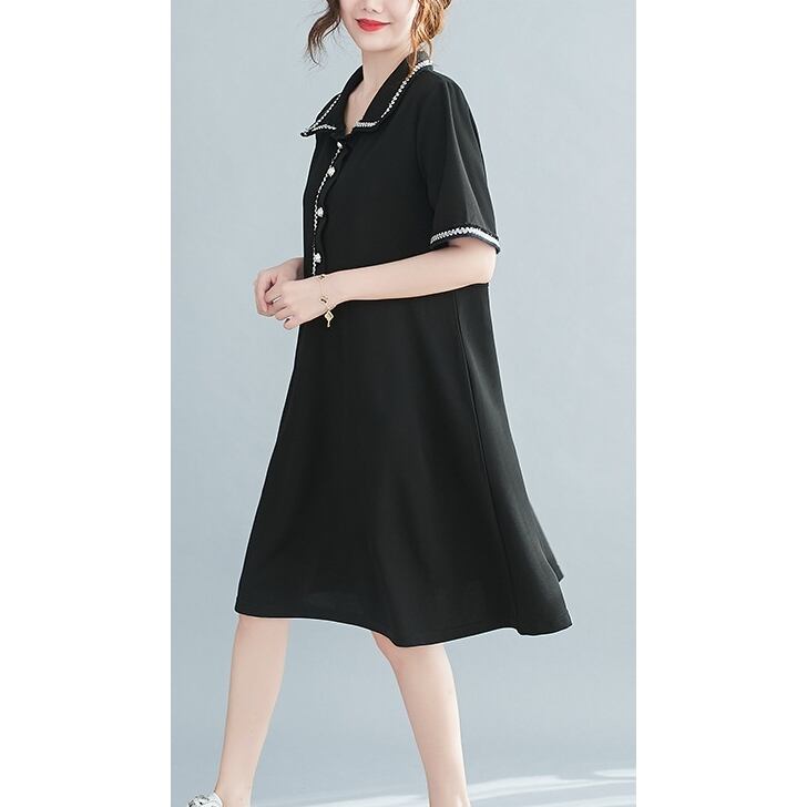 ゆったり ウエスト 半袖 ブラック ミディアムスカート 春 秋 ワンピース 黒 大きいサイズ レディース エレガント カジュアル ぽっちゃり 海外 通販 5l 4l 3l 736