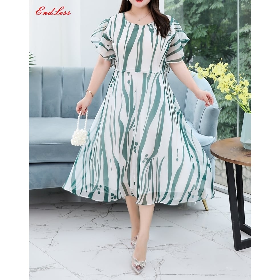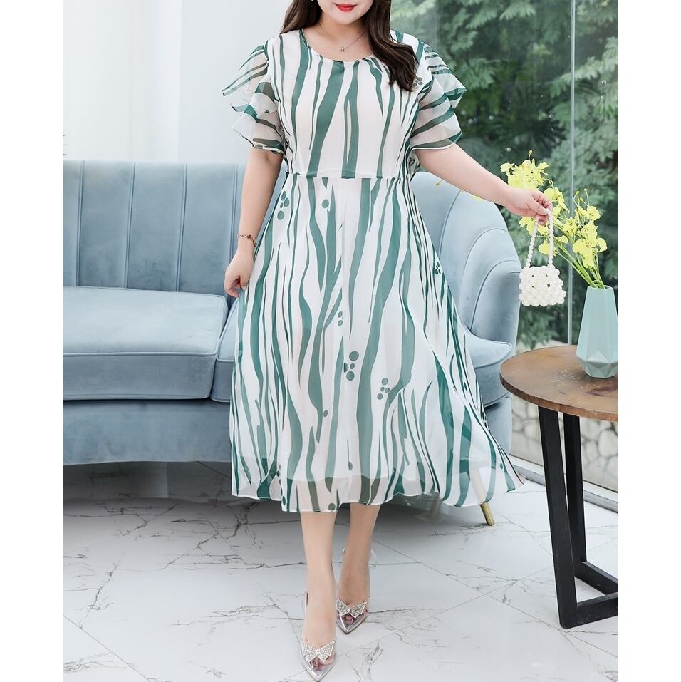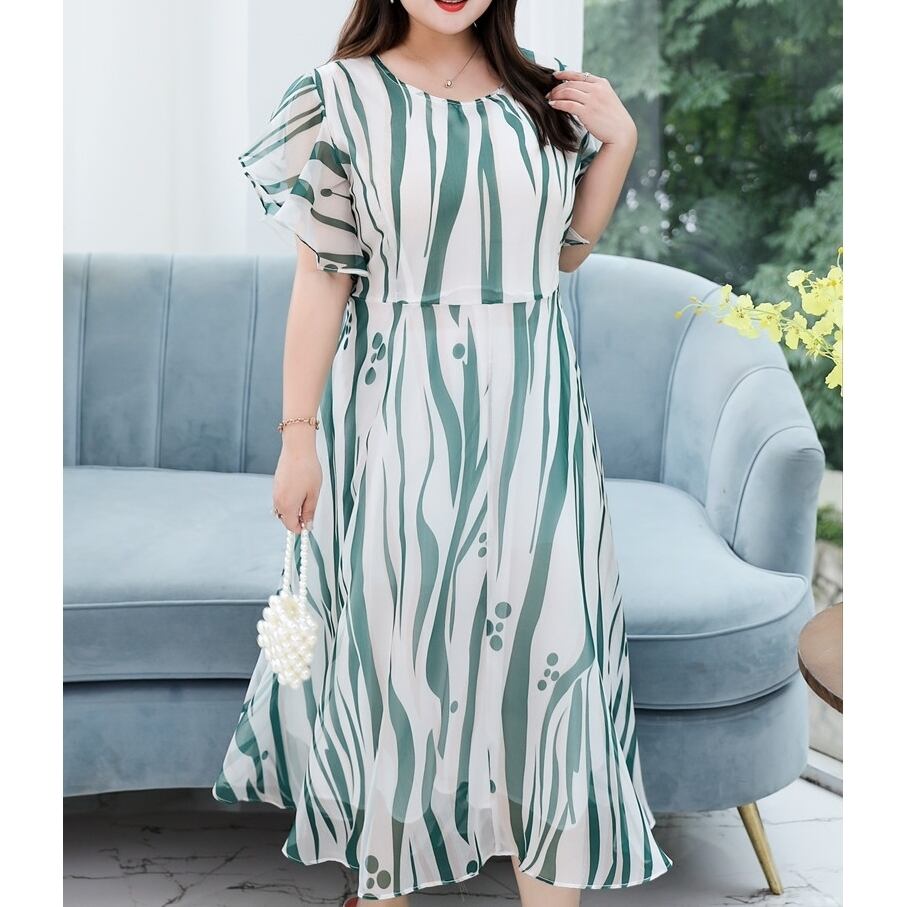 半袖 フリル スリーブ ストライプ ドレス ワンピース 大きいサイズ レディース エレガント カジュアル ぽっちゃり ビーチ 海外 通販 8l 7l 6l 5l 741