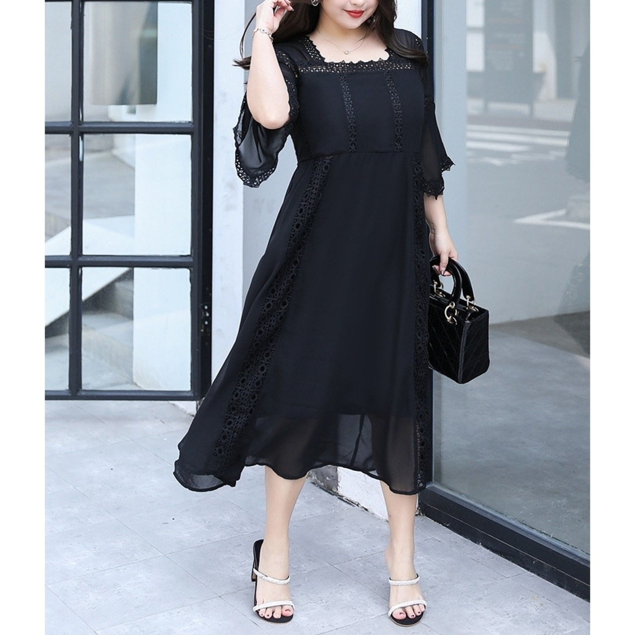 レース ステッチ 長袖 スキニー ロング ドレス ワンピース 大きいサイズ レディース エレガント カジュアル フォーマル ぽっちゃり 春 夏 海外 通販 8l 7l 6l 5l 744