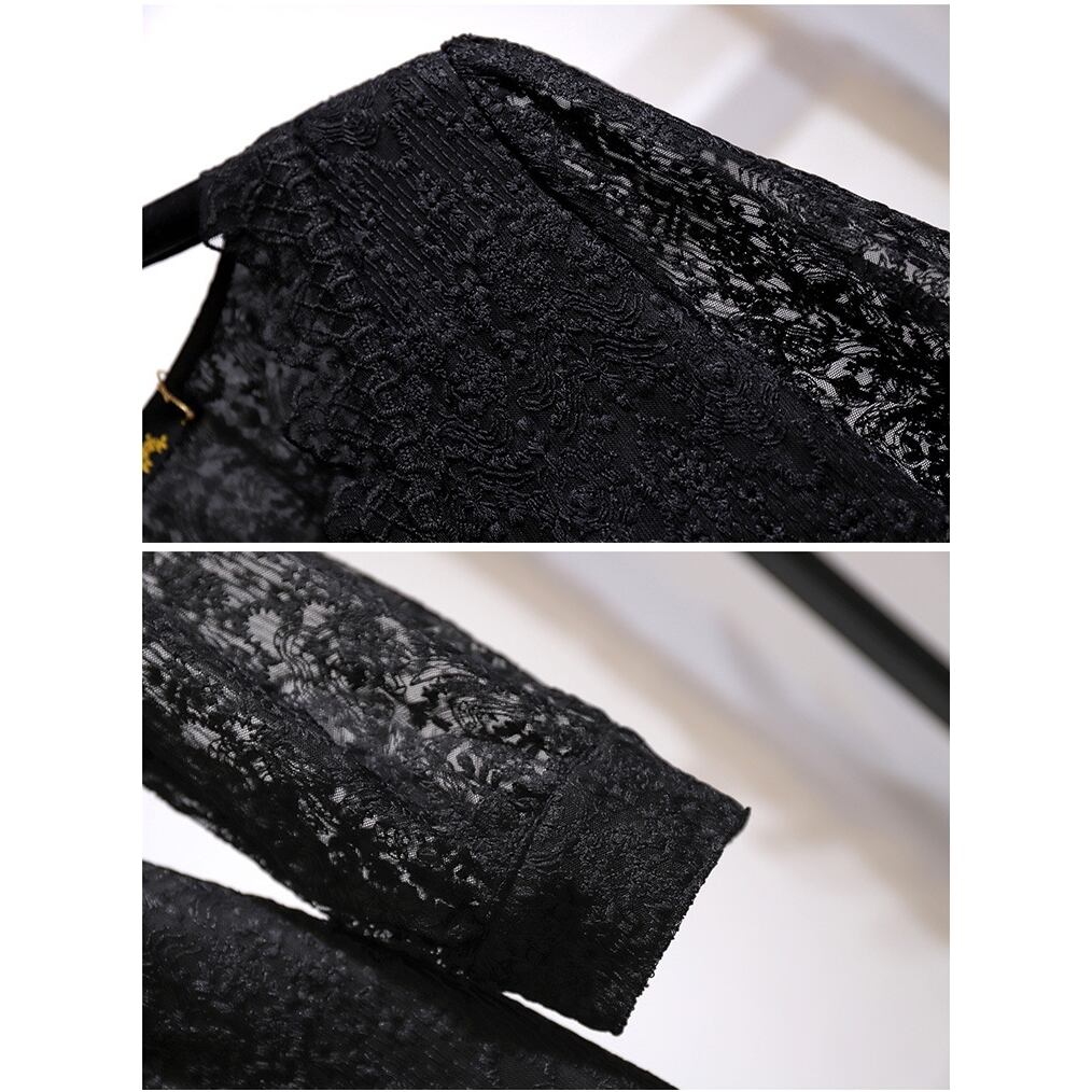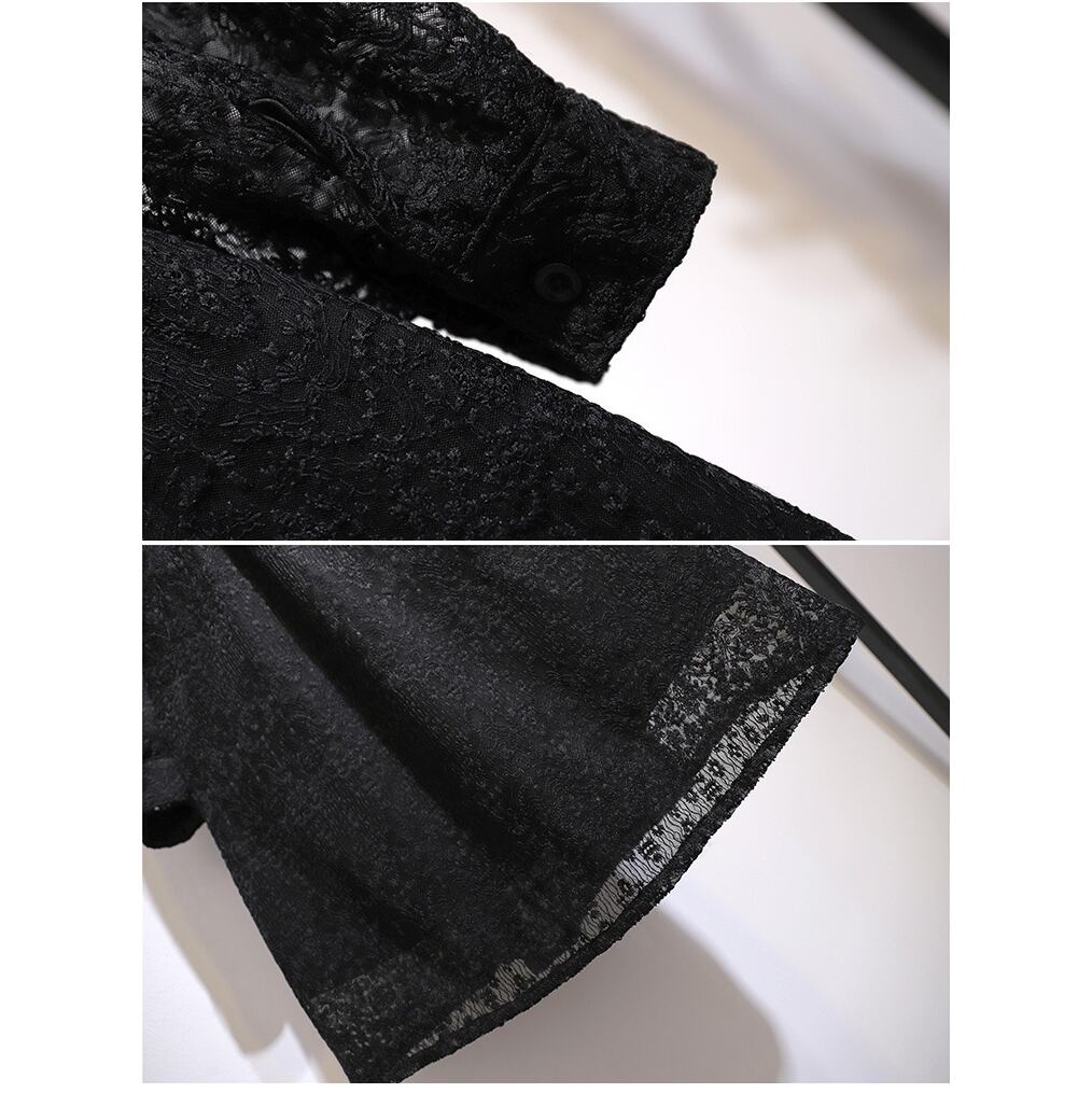 大きい サイズ 5XL ~ 2XL セクシー Vネック レース ステッチ 長袖 ブラック ドレス 春 夏 長袖 通販 5l 4l 3l 2l 760