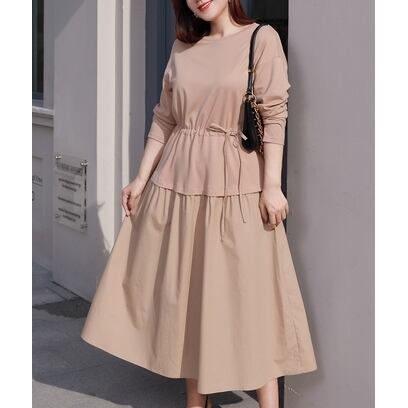 XL ~ 5XL 大きいサイズ ゆったり ウエスト スリング ロング スカート ドレス ワンピース 長袖 カジュアル 春 秋 安い 通販 769