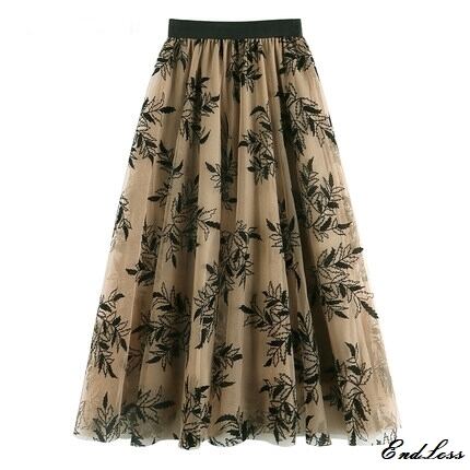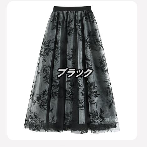 ヴィンテージ メッシュ ミドル丈 スイング スカート 春 秋 黒 カジュアル レディース 大人 女子 安い 通販 770